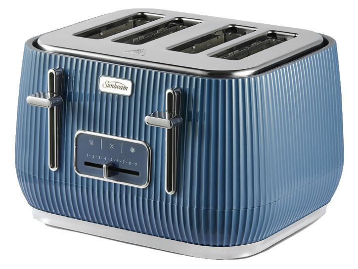 With the collection’s sleek, linear, textured design, glossy finish, and pop of blue, add a stylish statement piece to your bench top and brighten up your mornings.