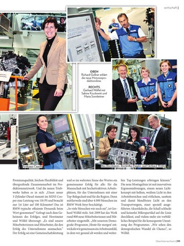 Premiumqualität, höchste Flexibilität und übergreifende Zusammenarbeit im Produktionsnetzwerk. Und die neuen Triebwerke haben es in sich: „Unser neuer 3-Zylinder-Diesel stemmt im MINI Cooper eine Leistung von 116 PS und braucht nur 3,6 Liter auf 100 Kilometer! Das ist BMW-typische effiziente Dynamik beim Wort genommen!“ Gefragt nach dem Geheimnis des Erfolges, sind Horstmeier und Wölfel überzeugt: „Es sind unsere Mitarbeiterinnen und Mitarbeiter, die den Erfolg des Unternehmens ausmachen.“ Der Erfolg sei eine Gemeinschaftsleistung