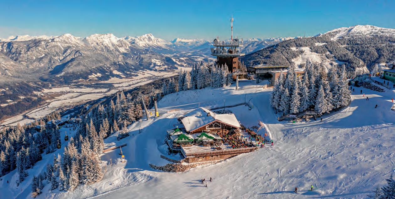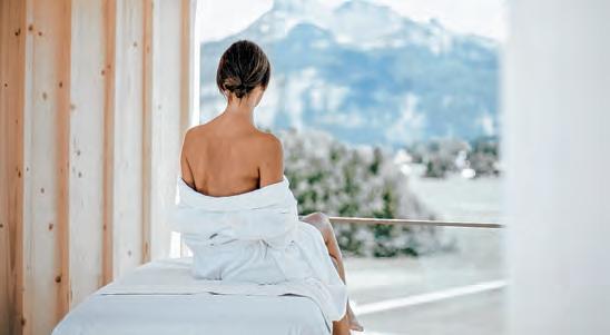 eim Entspannen und Sich Erden im Mittelpunkt Österreichs helfen viel frische Luft, entspannende Bewe gung, Wellness, erholsamer Schlaf und freundliche Gastgeberherzen mit Liebe zum Detail. Im exklusiven SPA Bereich nur für Hotelgäste sorgen unterschiedli che Saunen, ein In und ein Outdoorpool sowie ein Whirlpool mit Panorama Blick in die majestätische Bergwelt für Entspan nung. Offene Kamine, Kuscheldecken und Rückzugsnischen geben einem das Gefühl, den Wellnessbereich ganz für sich allei ne zu haben. Ein umfangreiches Behand lungsangebot, individuelle Beratung und Expert:innen unterschiedlicher Disziplinen garantieren ein perfektes Wohlgefühl. Für Literaturinteressierte bilden mehrere Bibliotheken, ein Büchershop, Veranstal tungen das ganze Jahr über Höhepunkte.