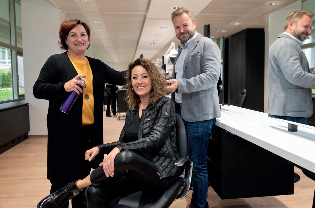 Natürlich hat man immer ein schlechtes Gewissen, was wahrschein lich jede Mutter mit einem Fulltime-Job kennt, aber ich versuche, gut zu kom binieren. Wenn ich abends im Außen dienst unterwegs bin, schaue ich, dass ich zumindest am Nachmittag ein paar Stunden Zeit für Hausübung und Ler nen mit den Kindern finde. Ich wechsle mich mit meinem Mann ab und auch die Omas sind oft im Einsatz. Und auch im Büro ist Teamwork gefragt. Bis vor Kur