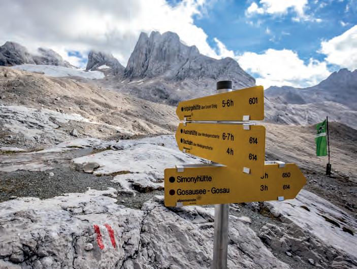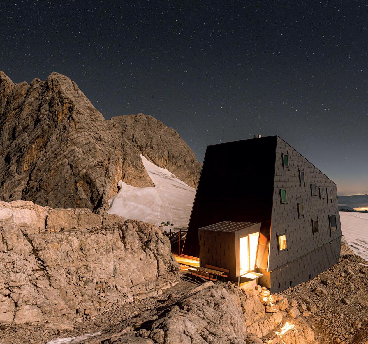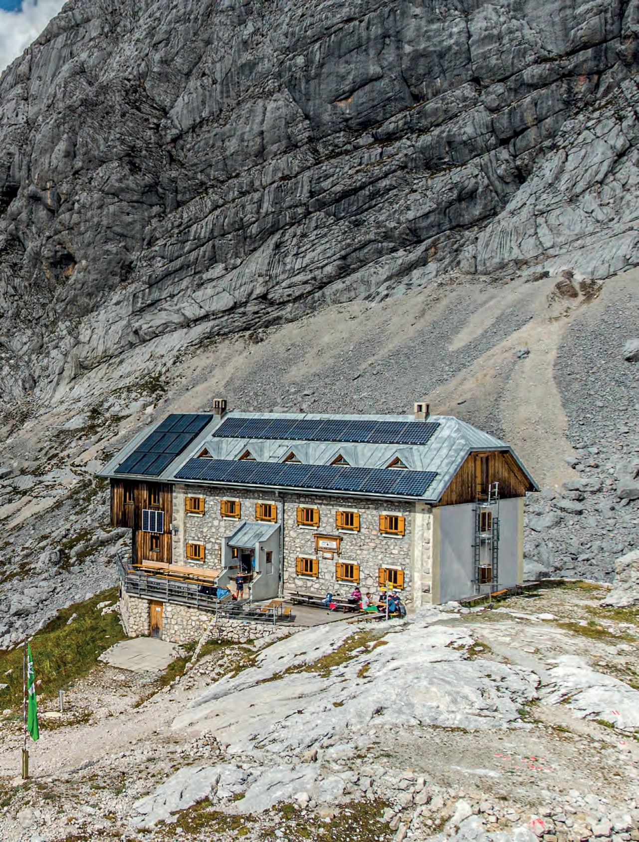 Fünf dieser Hütten im Salzkammergut inklusive Wanderrouten zeigen wir Ihnen ab Seite 86, und wir haben vom Alpenverein erfahren, was es für Hüttenwirte heißt, diese Kleinode zu bewirtschaften. Von Hüttenromantik ist die Arbeit auf den Bergen weit entfernt, denn auf abgelegenen Schutzhütten ist der Wirt meist Techniker, Brandschutzexperte, Koch und Erstversorger in einem. Wie man es schaffen kann, frisch, und nachhaltig zu kochen, wenn man nur alle drei bis vier Wochen mit einem Hubschauber versorgt wird, fanden wir bei unserer Einkehr bei Hüttenwirt Martin Scherr und seiner Frau Elisabeth auf der Adamekhütte am Dachsteingletscher heraus.
