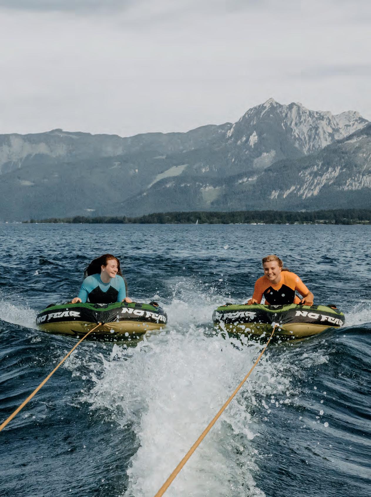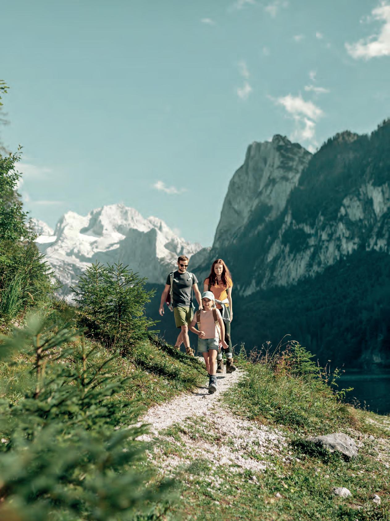 gangsfahrt oder eine Vollmondfahrt am Dachstein Krippenstein. Weitere Erlebnisse wie Almfeste bis hin zu geführten Wanderungen warten beim „Obertrauner Bergerlebnis“ von Juli bis Oktober. Aber auch auf Strandurlaub brauchen Familien im Salzkammergut nicht zu verzichten. Vom Solar Strandbad Steinbach am Attersee über das Alpenseebad Mondsee bis hin zum denkmalgeschützten Gmundner Strand- und Erlebnisbad: