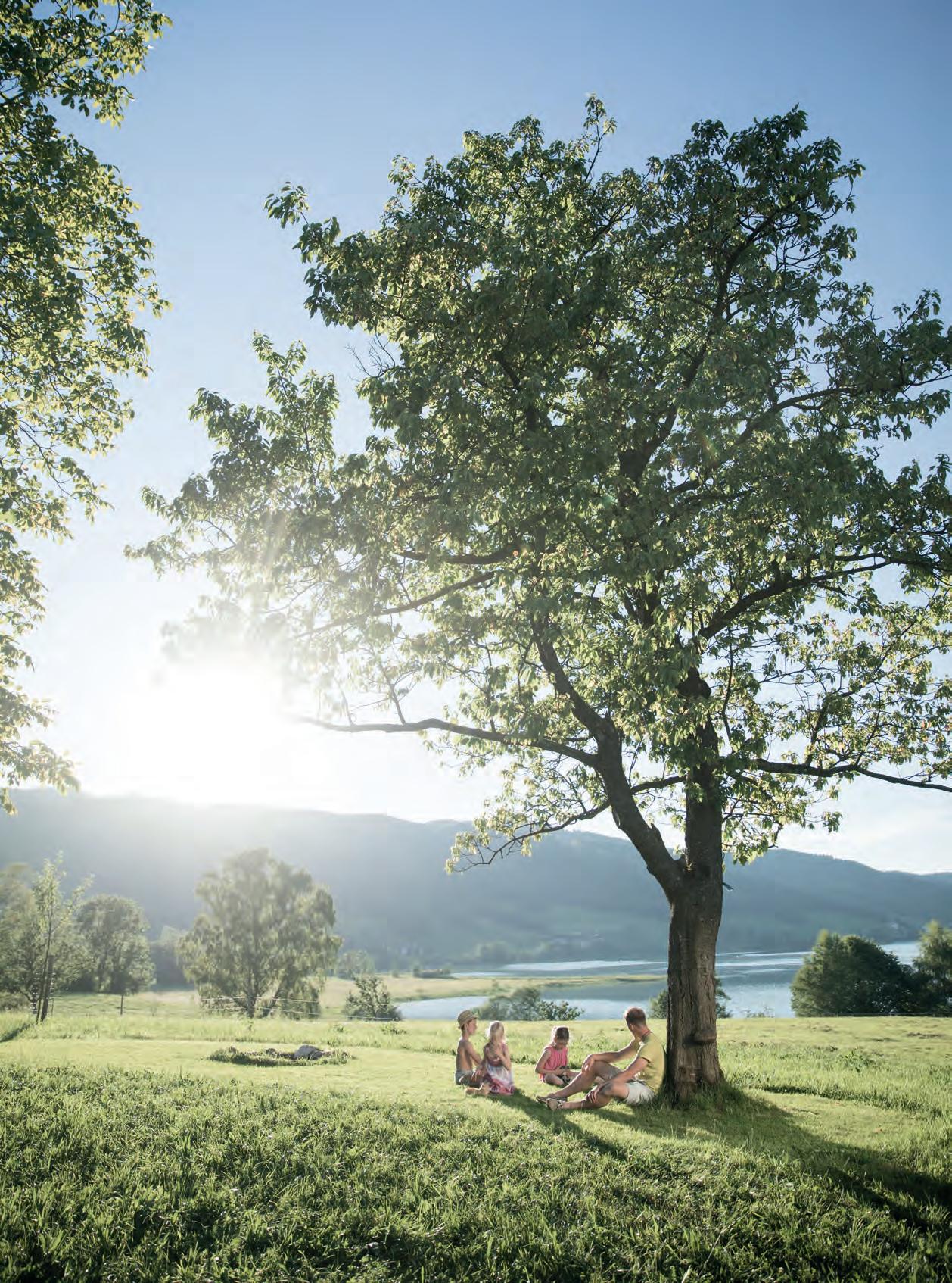 Zum Verweilen lädt eine bunte Palette an Gastgebern ein – das beginnt beim Erlebnisbauernhof, wo es muht und gackert, führt über Schlafen unter dem Himmelszelt und reicht bis zum Fünf-Sterne-Family-Resort mit allem, was man sich nur erträumen kann. Für aktive Gäste stehen vielerorts Boote, SUPs, Fahrräder oder E-Bikes zum Ausleihen parat. Und auch das Glück am Rücken der Pferde ist zum Angreifen nahe.