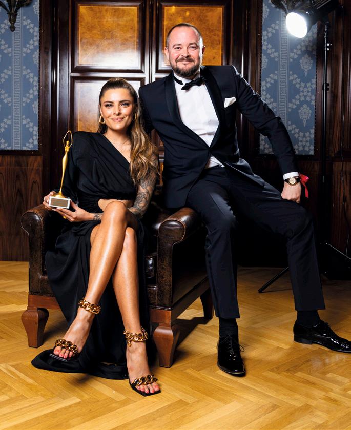 SOPHIA THOMALLA ist Schauspielerin, Moderatorin und Top-Unternehmerin. Die Laudatio auf sie hielt Moderatorin Silvia Schneider, Kategoriepartner Koppensteiner überreichte mit Geschäftsführer Daniel Koppensteiner den Award.