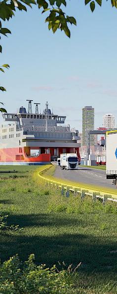 ložíme na trajekt a až poslední část cesty k zákazníkovi se realizuje za pomocí tahače.