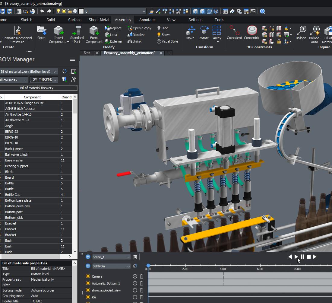 BricsCAD využijete od tvorby konceptu až po finálny návrh. Konštruktéri využijú voľnosť 3D modelovania, parametre a možnosti vytvárať dynamické zostavy. Dokumentáciu, kusovníky a šablóny pre plechové diely generujete automaticky. Vizualizáciu dopĺňajú animácie a realistické snímky. Konštruktéri ocenia návrh