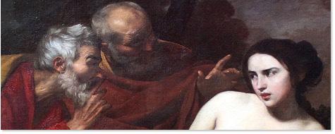 viene violentata e gettata via. Nel Libro di Daniele, la giovane moglie ebrea Susanna, bella e virtuosa, viene spiata mentre fa il bagno, come Betsabea, e guardoni libidinosi la costringono a scegliere tra il ricatto e il sottomettersi alle loro avances.