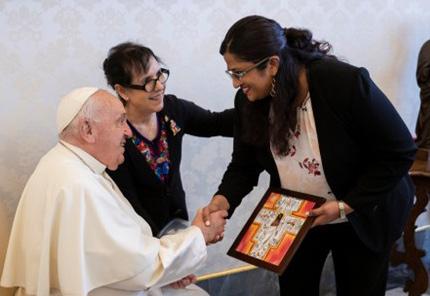 Discerning Deacons is committed to embodying synodality, including by partnering with the Ecclesial Conference of the Amazon (CEAMA)—the first ecclesial conference to include women in governance structures. In October 2024 DD and CEAMA hosted over 50 pilgrims from around the world, aged between 20 to 80, for the opening of the Synod in Rome. We were women and men: priests, deacons, vowed religious, lay ecclesial ministers, and faithful Catholics, who came together to pray, bear witness, and build relationships that will continue to serve the discernment about women and the diaconate. We celebrated public liturgies in honour of St. Phoebe; hosted educational sessions on ecology, synodality, and women’s ministry; prayed with and for Synod delegates; and participated prayerfully in the Synod’s opening ceremonies. I was honoured to be among nine women from four continents (including Rosella Kinoshameg) who represented our group and met privately with Pope Francis on the eve of the Synod. In our encounter we articulated our support for synodality and the ways that it has brought us together, shared our desire to serve the Church, and prayed together—for him and for the Synod. Pope Francis also blessed an icon of St. Phoebe which we used in prayer in Rome that week.