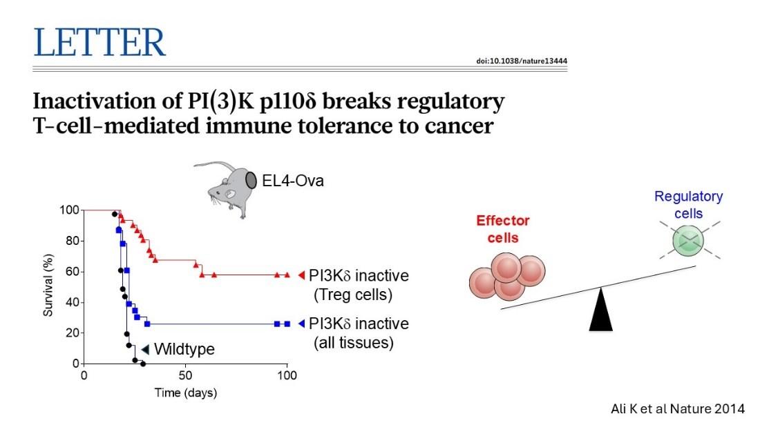 inhibitors of PI3Kδ to block immune responses, not to stimulate them. However, Soond was able to show that when we inhibited PI3Kδ specifically in regulatory T cells, the anti-tumour effect was even stronger.