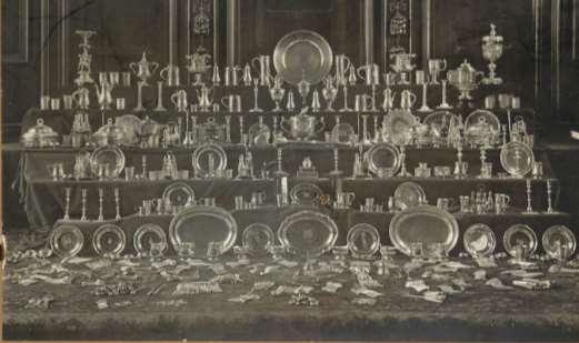 the High Table silver were still cleaned and washed by hand. In fact, all the cutlery in use throughout Hall was once hand-washed after every meal. Polishingthesilverwastime-consumingbutworthit. TheCollege owns magnificent pieces and we chose special silver items to display at Reunion Dinners and on High Table. The collection includes silver ashtrays. Smoking was once allowed in the SCR where cigarettes and cigars werepassedround.