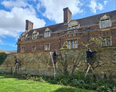 With so much going on, tricky moments are unavoidable. A dog owned by a former Master’s wife posed frequent problems. It particularlydisliked menandoftenranat meandnippedmyanklesjust as I carried glasses and other fragile things across the Master’s Garden In the summer, private parties on ‘the Beach’ were also often difficult because we had to chase away tourists and sometimes students from other colleges who moored their punts there and just joined in. Even looking after the wine could be eventful. A critical moment came when we had to rescue all the stock from the old port cellar under the Pepys Building. The cellar had become so damp that the wooden cases had rotted away. We had to transfer the bottles of port to new containers beforecarryingallofthemacrosstonewcellarselsewhereintheCollege. And I remember frequent squabbles over dinner tickets – a system long gone but where students bought books of tickets with different values which had to be torn out to the correct amount (or not) to pay for meals. Themulti-coloured ticketslookeda little likeraffle ticketsand therewas morethanasenseofalotteryforthestaffchargedwithgettingitallright. Today,ourcomputerisedsystemhastransformedbookingsandall the necessary accounting. Everything is much better organised, but the silver is not on display as it once was and I’m not sure that the students take as much interest in wine – even though it’s good that the drinking societies of old have largely gone. And it’s just as well that the system is betterorganisedbecausetheCollegeissomuchlargerthanitwas – many more graduates, more Fellows and many different venues to manage –the open areas of Cripps Court for example and other new public rooms forfunctions. Butthere’soneotherconstant–theCollegegraceinFormal Hall– andfornewmembersjoiningusandoldmembersreturningIshall stillbe on the left at the front, ‘Stand in Hallplease!’