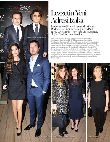 Lezzetin Yeni Adresi Izaka Lezzetin ve eğlencenin yeni adresi Izaka Restoran ve Bar, Gümüşsuyu’nda Park Bosphorus Otel’in teras katında geçtiğimiz akşam özel bir davetle açıldı. TARKAN ARTIȘ, İLHAN ZEYTUN