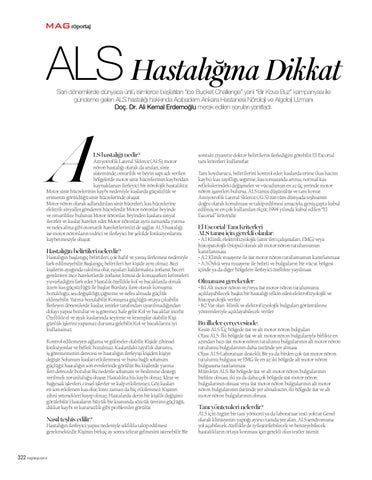 ALS Hastalığına Dikkat Son dönemlerde dünyaca ünlü isimlerce bașlatılan “Ice Bucket Challenge” yani “Bir Kova Buz” kampanyası ile gündeme gelen ALS hastalığı hakkında Acıbadem Ankara Hastanesi Nöroloji ve Algoloji Uzmanı Doç. Dr. Ali Kemal Erdemoğlu merak edilen soruları yanıtladı.