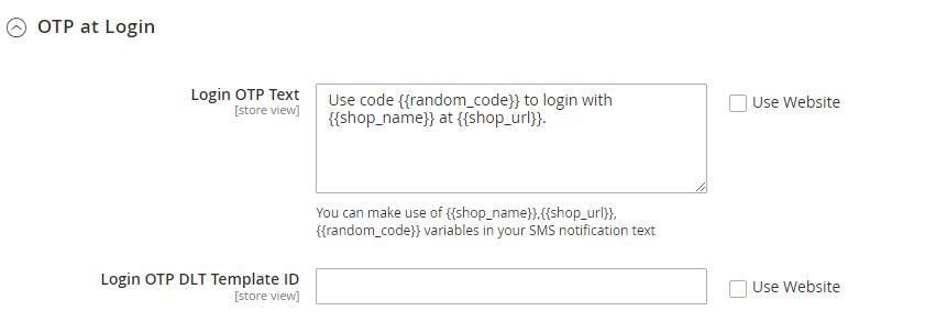 ● Login OTP Text: Set custom text using variables for sending OTP SMS for Customer Login.