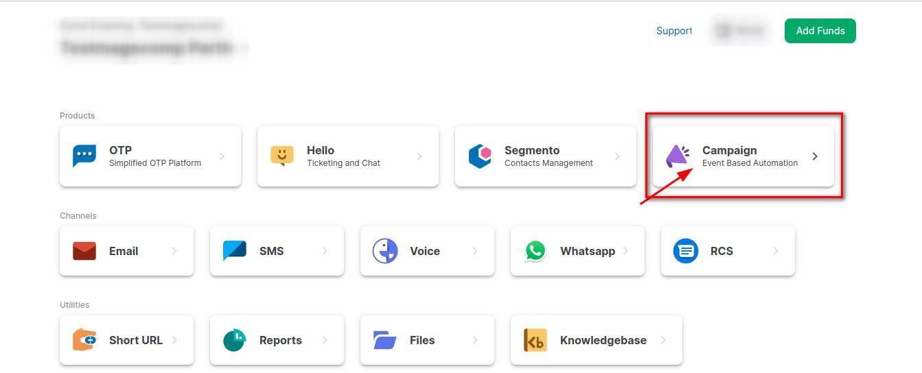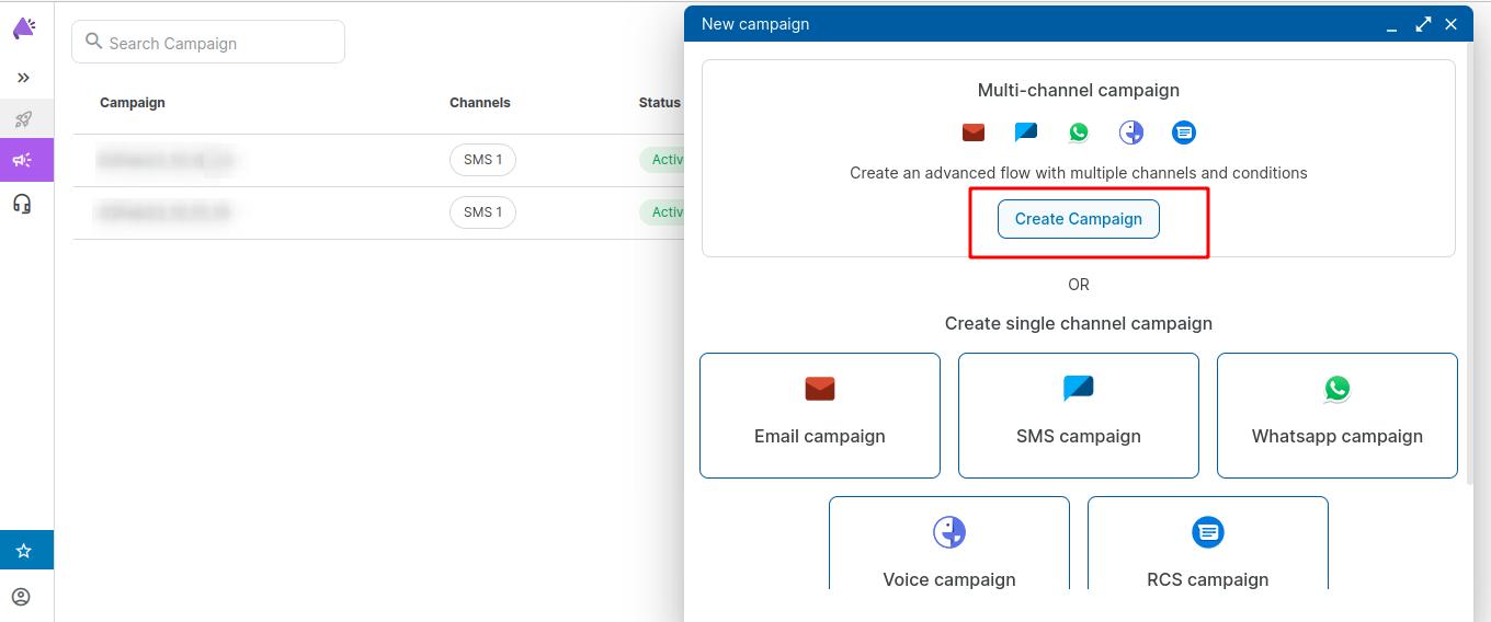 Step 1:- In MSG91 Dashboard, click on Campaign.
