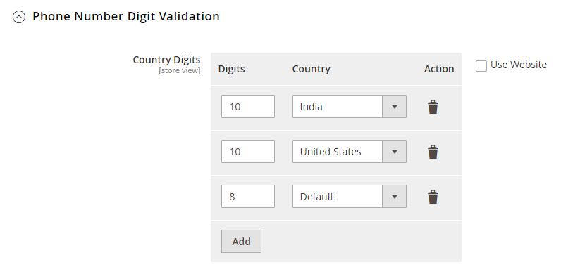Select the country and allowed digits for validation. Admin can add countries according to the requirement and delete it easily.