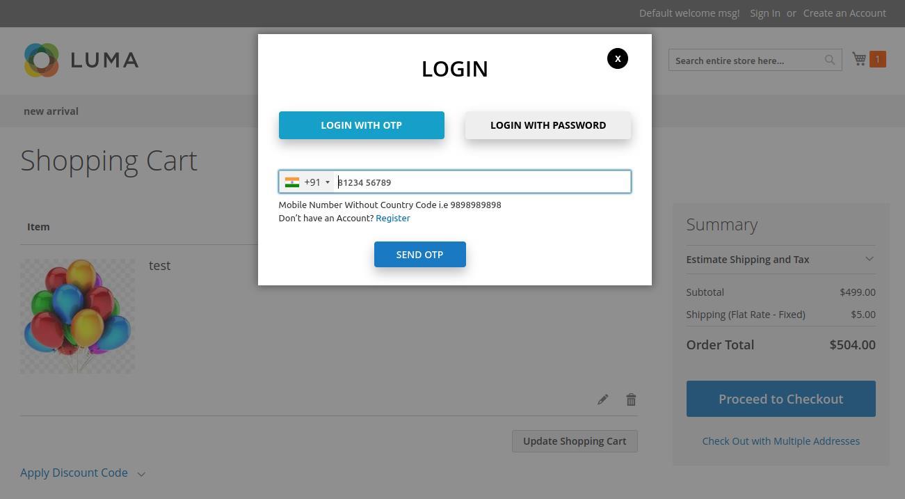 Mobile OTP Login also supports Guest Checkout. Guest users can quickly log in with OTP as well as a password at the time of checkout.