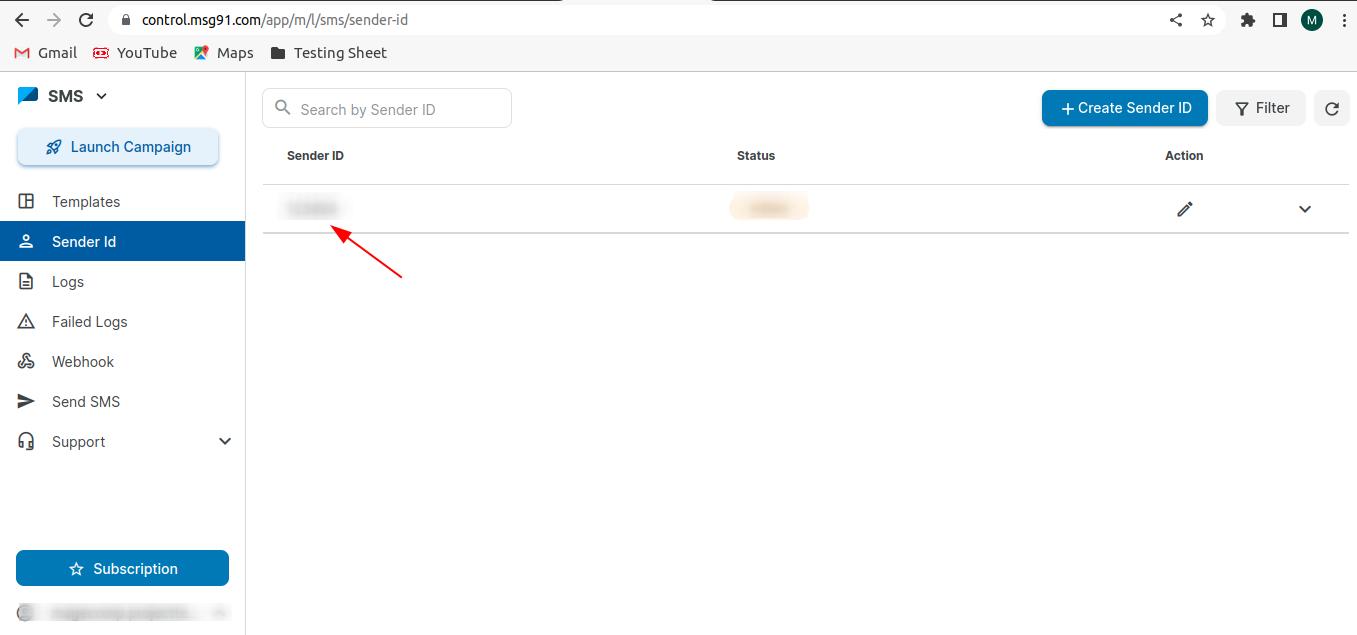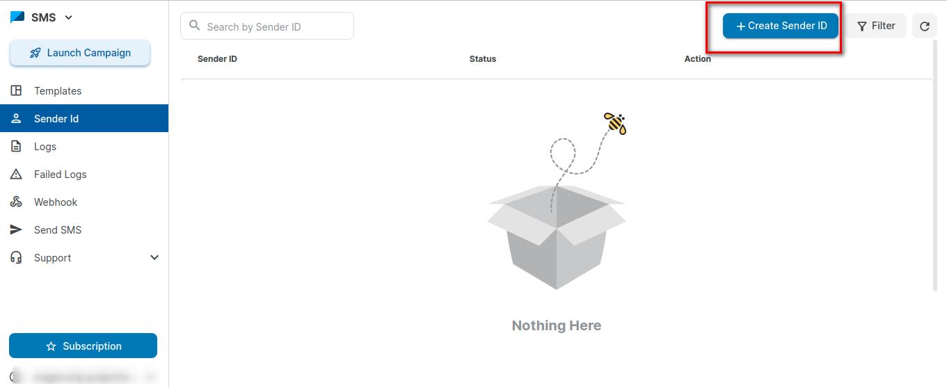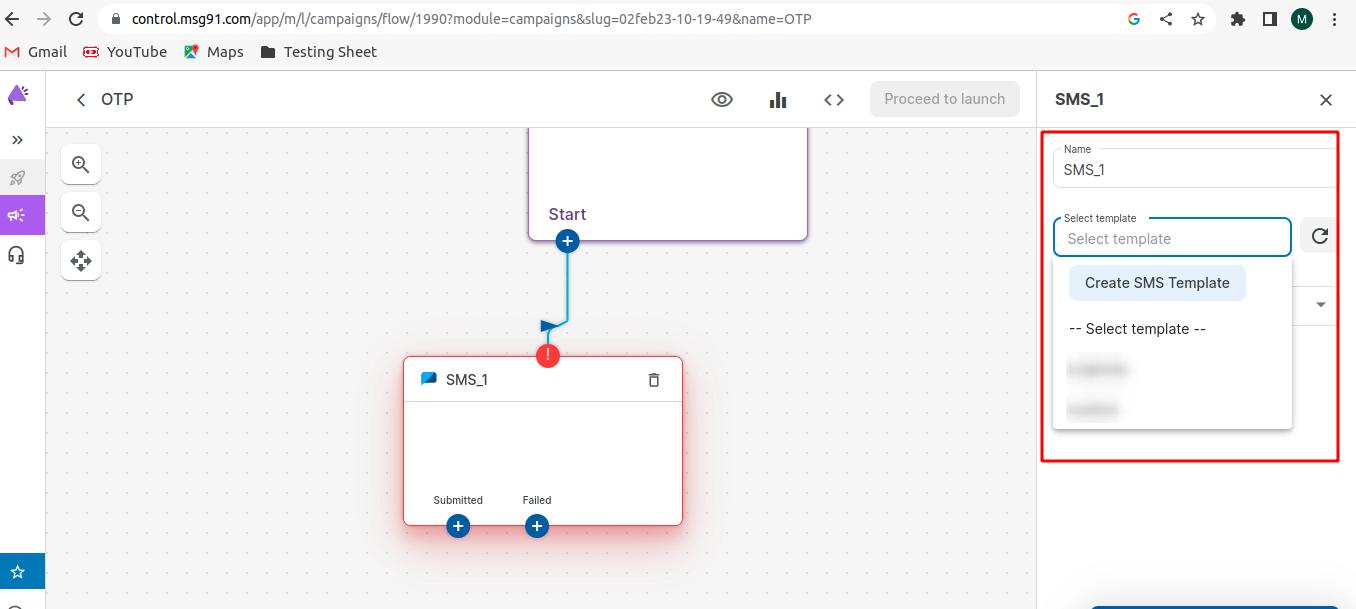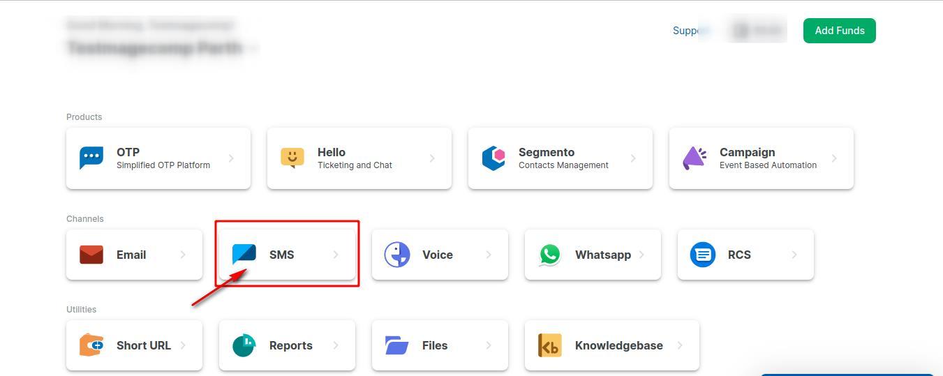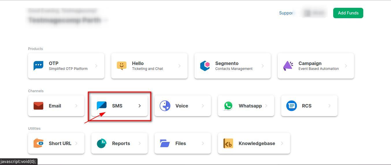 Step 1:- In MSG91 Dashboard, click on SMS.