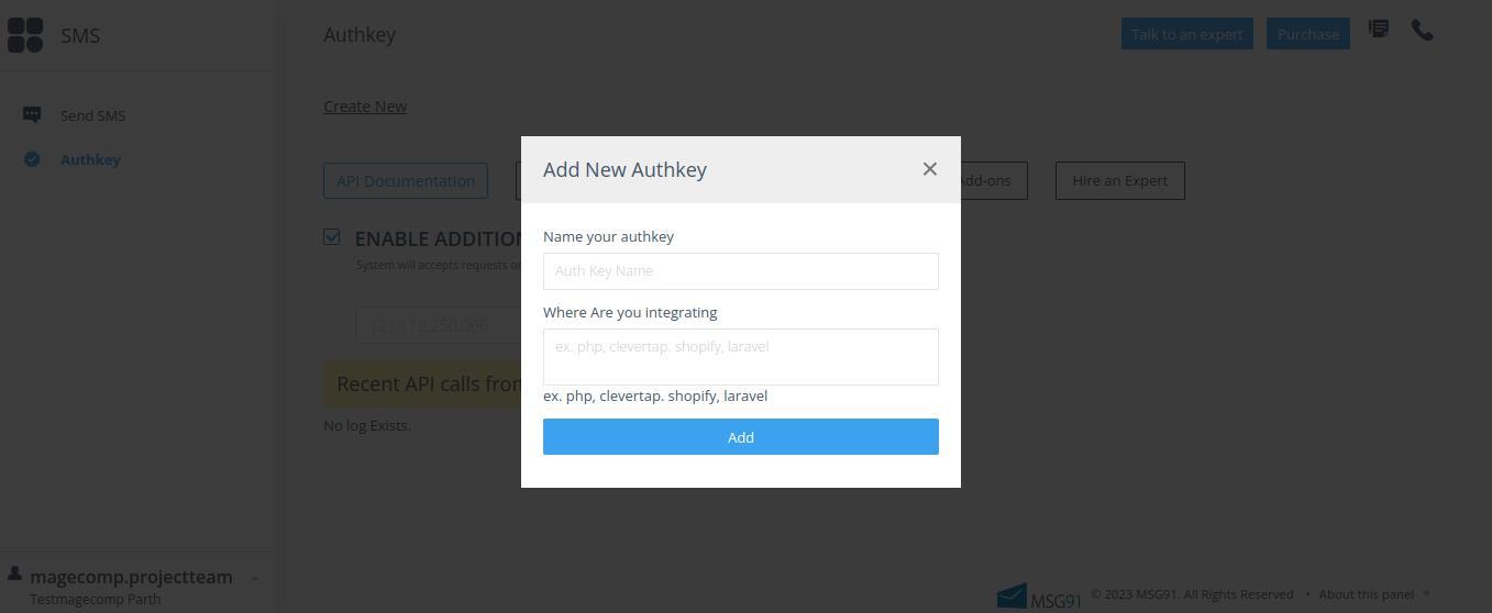 ● MSG91 Authentication Key: Enter the authentication key of MSG91.