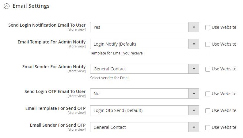 ● Send Login Notification Email To User: Determine whether the admin will receive login notifications via email.