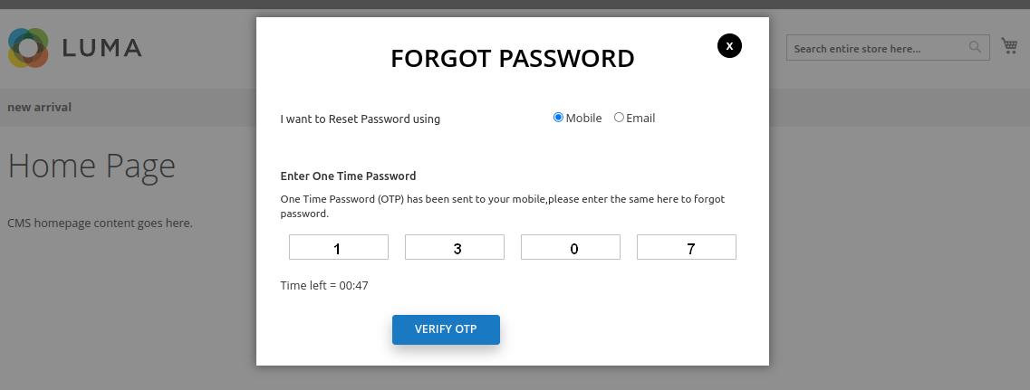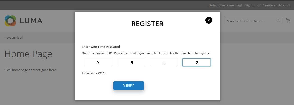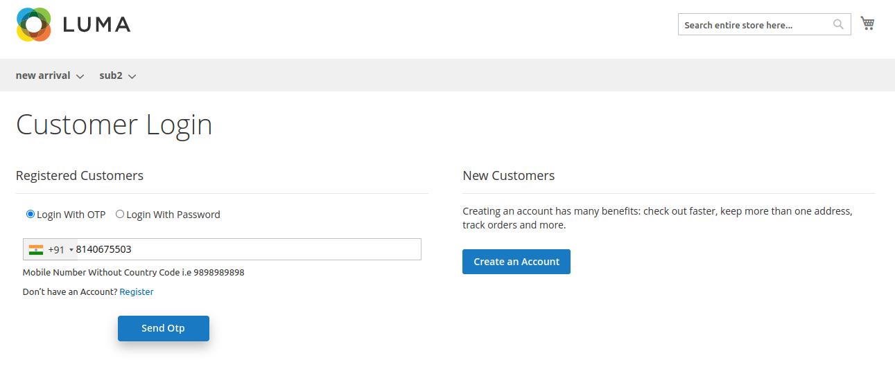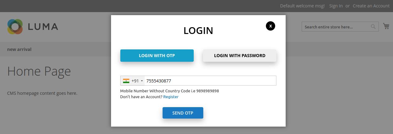 Once your customer is successfully registered to your Magento 2 store, they can quickly log in either using OTP or a password.