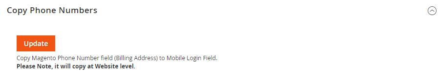 This will copy all the Magento phone number field from the billing address to the Mobile Login phone number field at the website level.