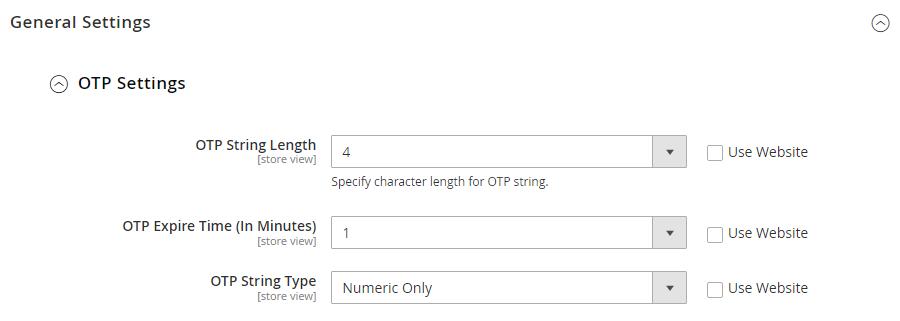 ● OTP String Length: Set the length of the OTP string as 4 or 6.