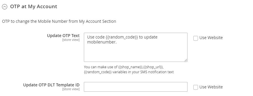 ● Update OTP DLT Template ID: Enter DLT Template ID. This is only for Msg91 SMS API users.