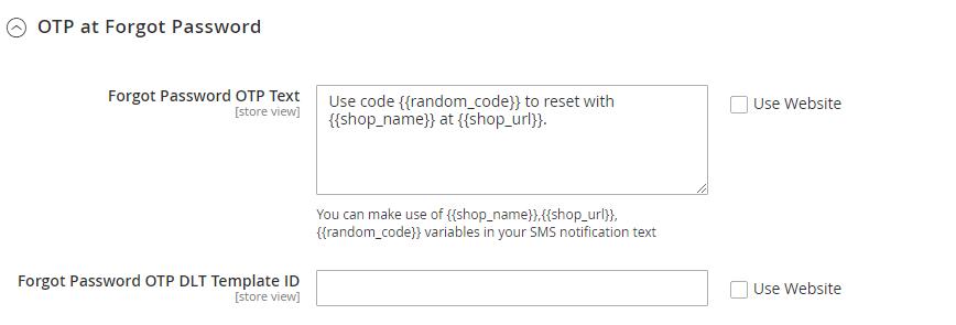 ● Forgot Password OTP Text: Set custom text using variables for sending OTP SMS to Reset Password.