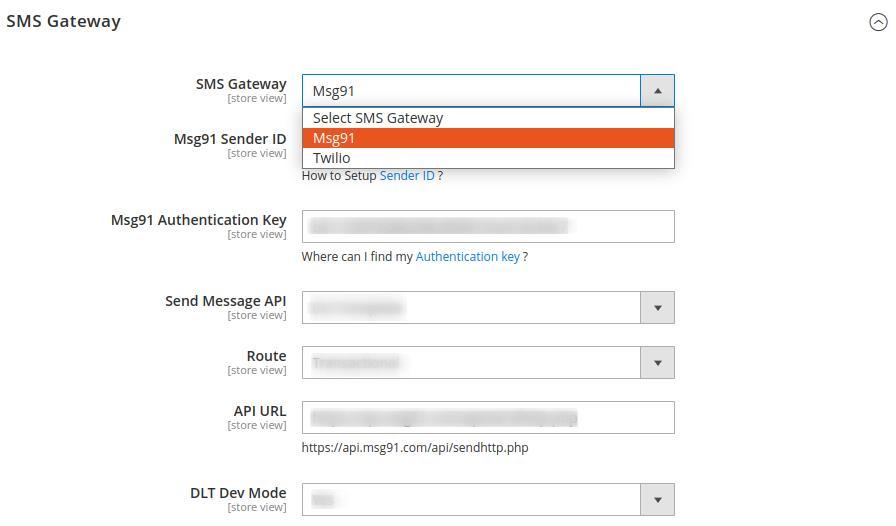 ● SMS Gateway: Select MSG91 SMS Gateway from the dropdown.