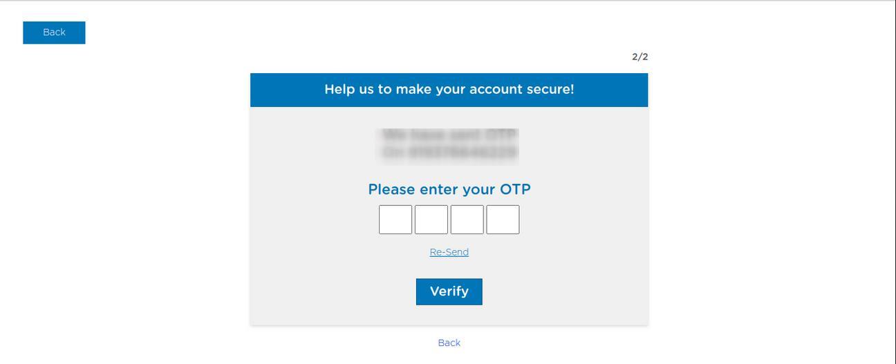 In case the OTP verification time is out, the user gets the option to Resend OTP.
