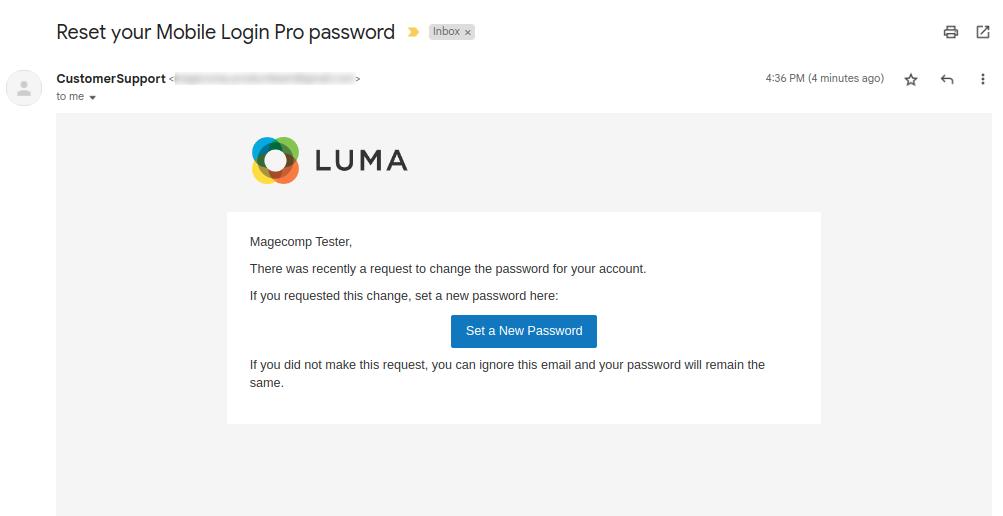 When the customer clicks on the Send Email button, an email will be sent to the customer with a reset password link. Check your email.
