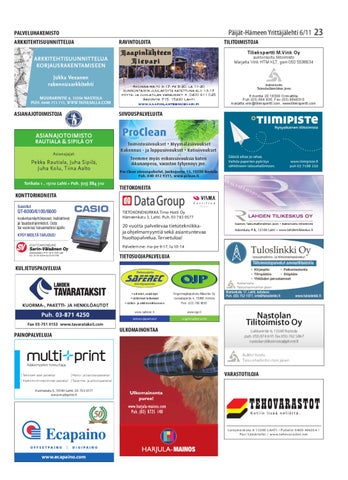 Päijät-Hämeen Yrittäjälehti 6/11 RAVINTOLOITA