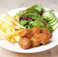 x balletjes gehakt in tomatensaus met frietjes (jonger dan 14 jaar) aan € 11 = €