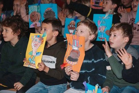 Alle leerlingen van de school ontvingen ‘s morgens het bonte gezelschap in de polyvalente zaal van de school en alle vraagstukken werden opgelost.