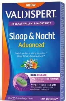 Nacht, met de 2-in-1 werking van sneller in slaap vallen en een gezonde nachtrust, in een verpakking met dertig tabletten op basis van onder meer Valeriaanwortelextract en Slaapmutsje - en geschikt voor vegetariërs.