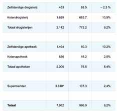 omzet met 9,2%, maar dat kwam volledig op conto van de ketendrogisten: de zelfstandigen noteerden een omzetdaling van 2,3%.