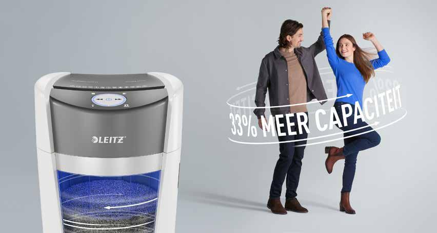 Leitz IQ OptiMax is uitgerust met ‘s werelds eerste roterende opvangbak technologie, die zorgt voor een gelijkmatige papierverdeling zodat je maximaal gebruikmaakt van de inhoud van de opvangbak. Een revolutionaire versnipperervaring voor je werkplek, die ervoor zorgt dat jij je goed voelt!