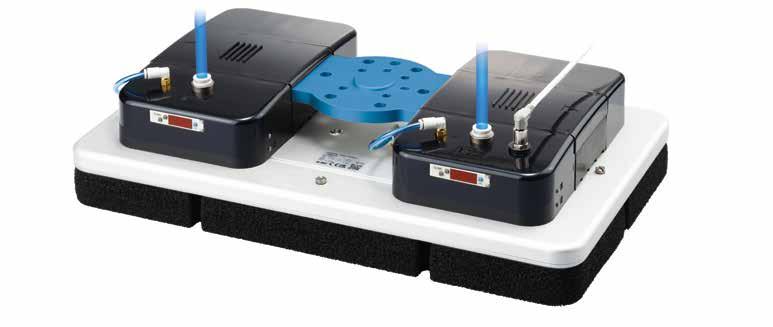Veelzijdigheid in elke greep Ondanks het compacte formaat biedt de grijper met zijn schuimoppervlak van 400 x 240 mm voldoende zuigkracht voor uiteenlopende objecten. Deze is bovendien beschikbaar in 400x240, 300x180 en 200x120. Dankzij de geïntegreerde terugslagkleppen kan hij ook werkstukken met verschillende afmetingen veilig vastpakken. Ook verticaal grijpen is geen probleem voor deze grijper. Dat is een groot verschil met conventionele grijpers, die vaak beperkt blijven tot horizontale toepassingen.