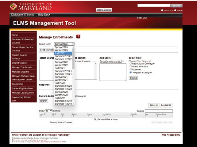 2105 J.M. PATTERSON BUILDING 4356 STADIUM DRIVE UNIVERSITY OF MARYLAND COLLEGE PARK, MD 20742