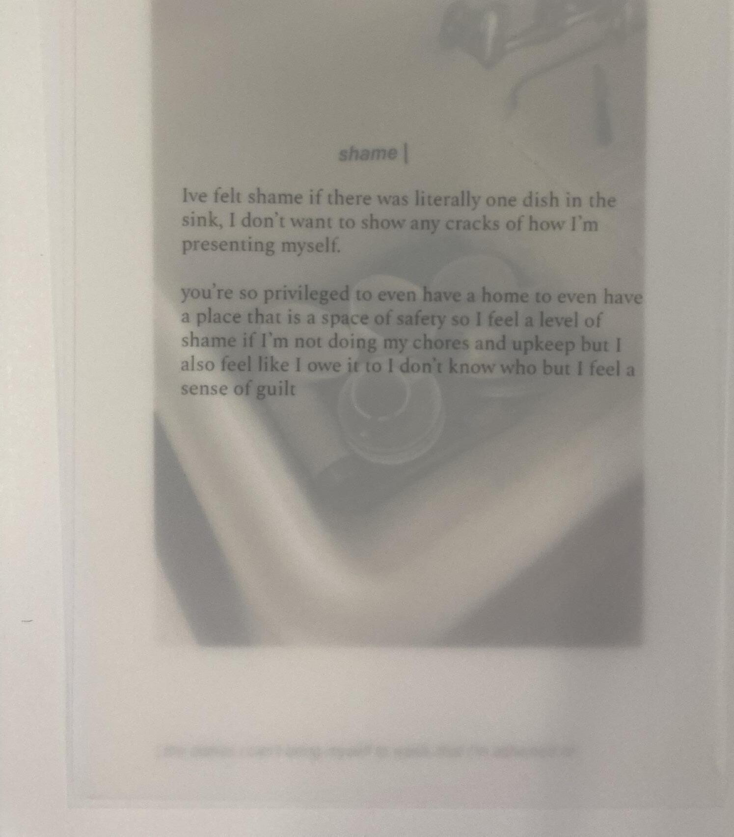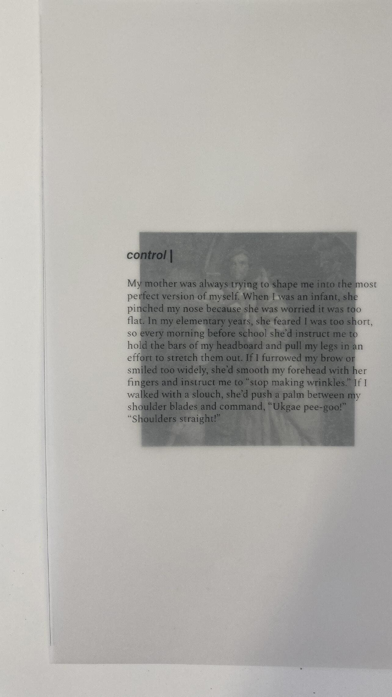 Turning back to CryinginHMart as a guide, I pulled scenes that allowed me to process different ghosts of the domestic sphere in relation to lived experience. I chose moments of Zauner’s life to pair with ghosts I myself was carrying, layering them together because the moment described in the book helped me understand domestic baggage differently, stood in direct contrast to my own rigid assumptions, or softly gestured at some kind of nuance. Are the ghosts of the domestic any less relevant today? Do they cloud our ability to see our lives for what they are? Are our lives any less valuable because they are wrapped up in loss, depression, or oppression?