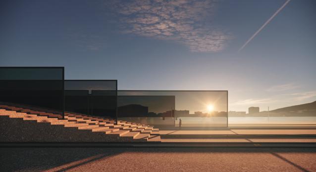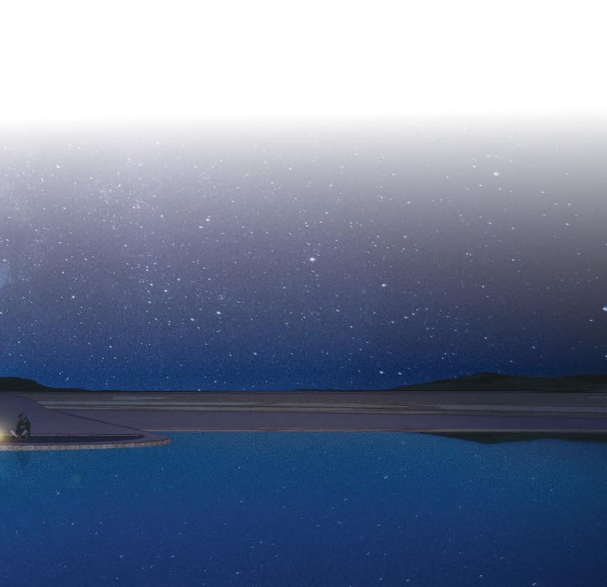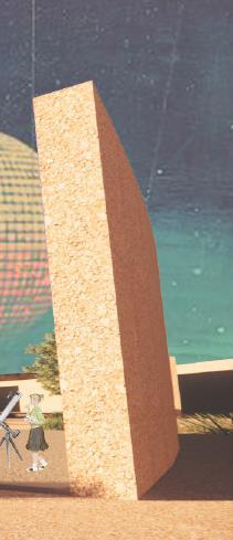 Four dynamic observatories that utilizes the rail track to map the settings of multiple celestial bodies on the horizon. Each screen corresponds to a celestial body’s setting on the horizon. Daily movement along their track allows the screen’s notch to capture the setting to the viewer’s perception. The viewer remains on a stagnant, stepped platform to give access to the area’s horizon. Place is aware through yearly tracking cycles and how planet, moon, and solar orbits relate to ours.