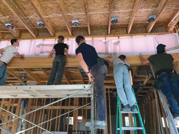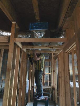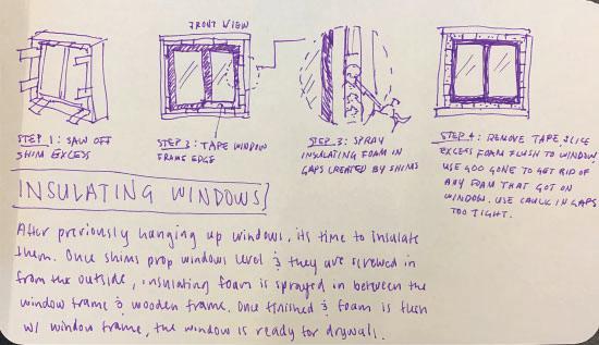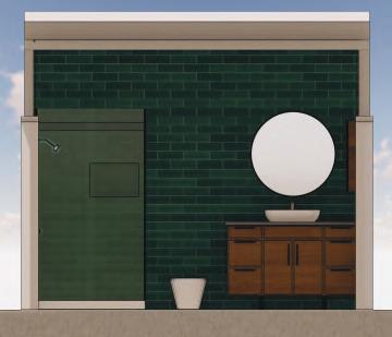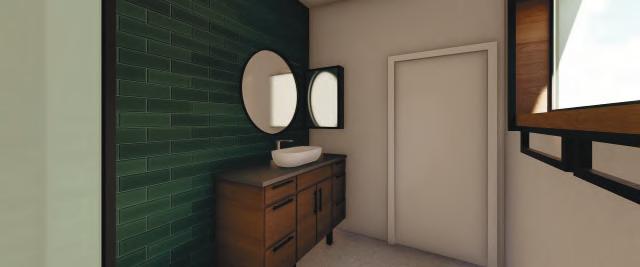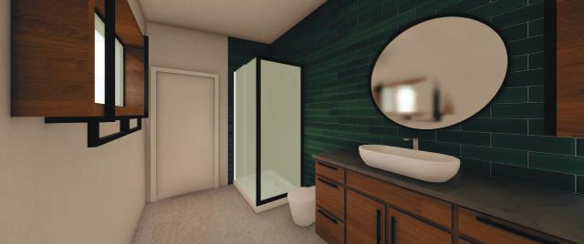 Continuing the work of the previous semester’s, our classes task is to finish construction of Rowhouses 3 + 4. Under the hand of Professor Mary Hardin, students are tasked with the physical construction of the building. This work includes installing roof panels, glass and polycarbonate windows, insulation, building framing and so on. The building portion requires a lot of hands on education, constant use of power tools and construction equipment, and quick learning and problem solving. On top of all the on-site building work, interior design practice also takes place. My current task is to design, budget, and draw up construction documents for builtins for the bathroom of Rowhouse 3 along with another student.