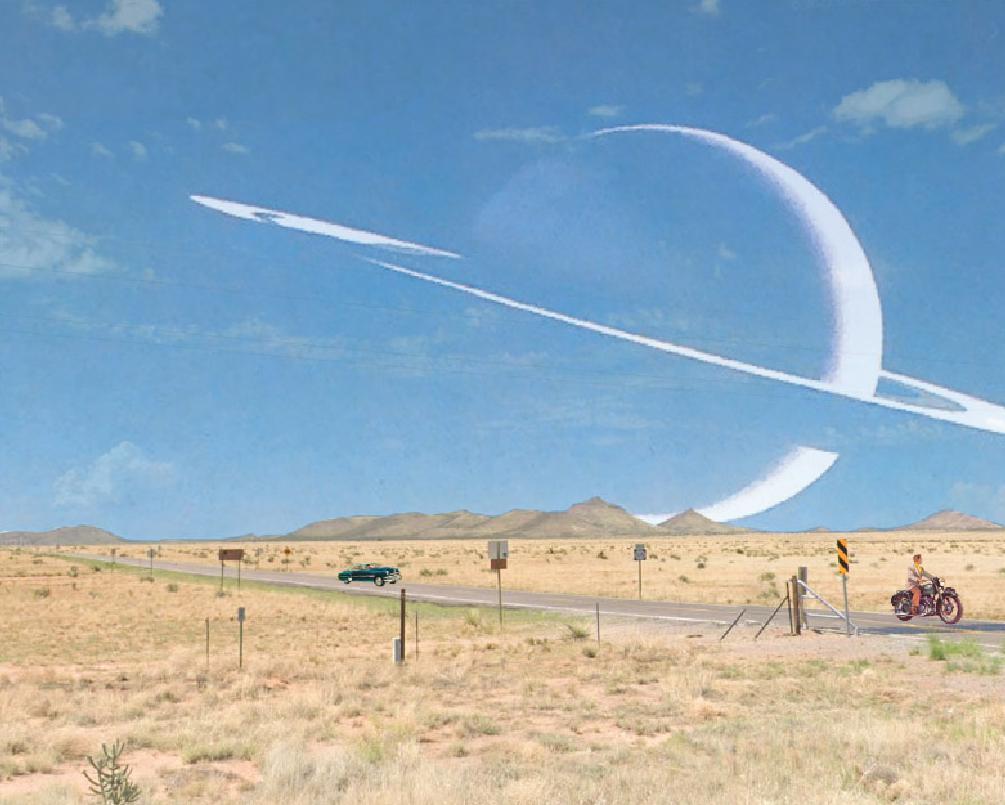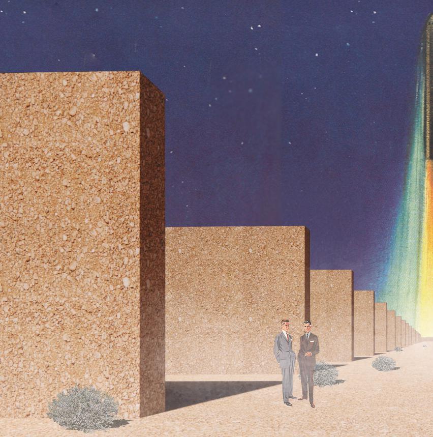 The atomic age was a time of curiousity, innovation, renaissance, and wonder. Sparke leading to the moon landing and nuclear energy. However, as quick as we were mov hundreds of thousands have been affected by radiation from nuclear tests and govern place to recognize the lives lost from across the globe, having them journey through m flame. However, to best encapsulate its scale and presence, a literal approach to the concentrating around the entire half-mile diameter physically altered site, exposing the well beyond the physical site as markers are made up to 250 miles away (as far as w of personal reflection, reflecting the dicotomy on our innate curiousity of the universe b noted that this project is entirely conceptual and delved more into the site’s research-d radiation. This was meant to explore atmosphere and emotions rather than specific arc