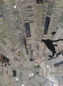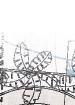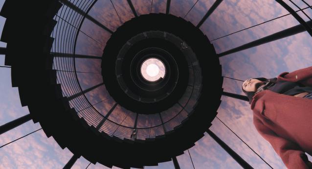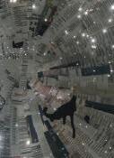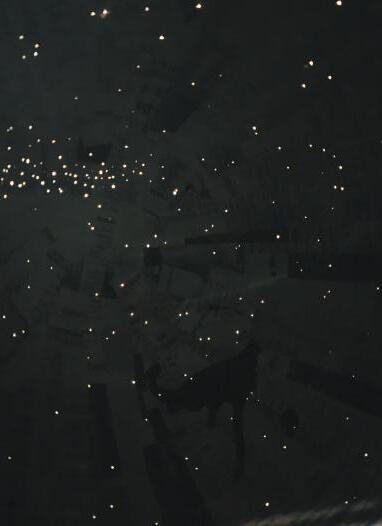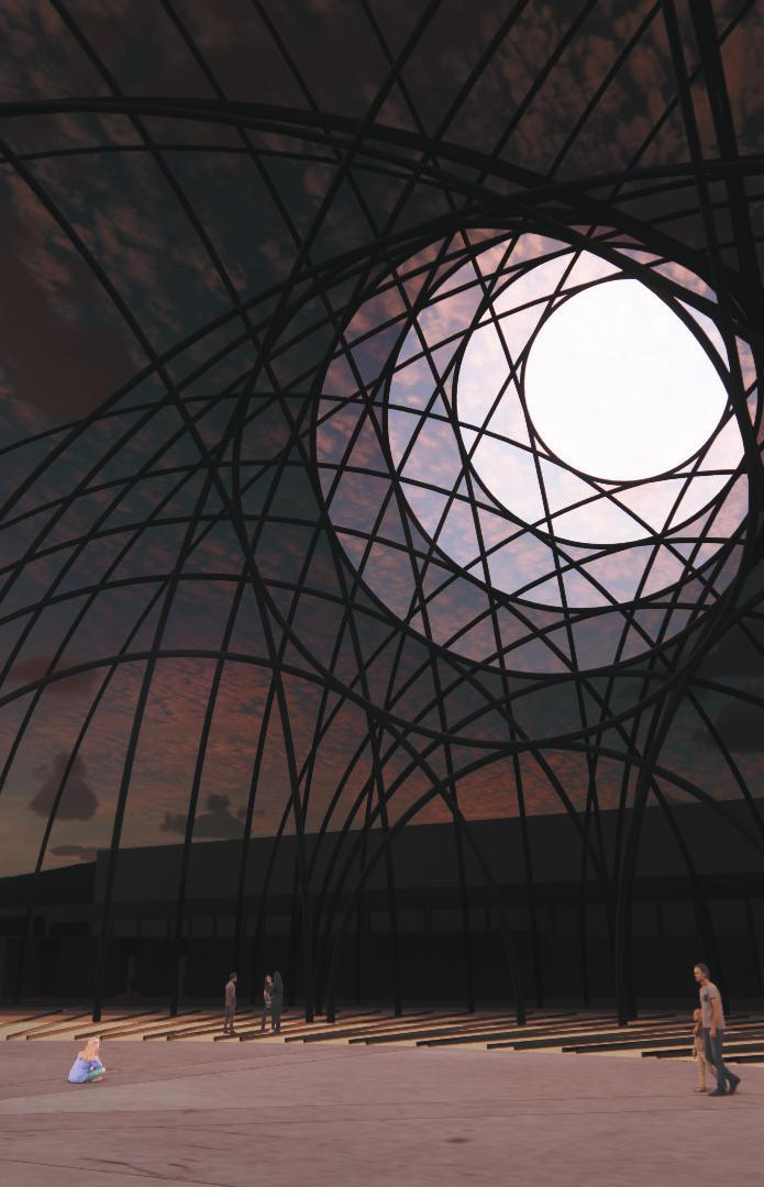 An inclave observatory that utilizes the rail track for celestial point in their orbit. Three layers of scrim move together on the year so that the viewer underneath can always see it f movement, it is for lunar observation by the daily time cha through daily and monthly tracking cycles.