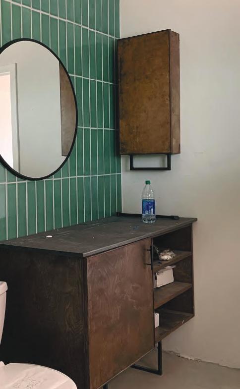 Although I spent much time building around the site, my most noteworthy work came from my contributions to the rowhouse three bathroom. With the help of another student, we co-managed the layout of the existing space, the decor selection, the built-ins’ design, and much of the installations. However, I spearheaded the tile layout design and the construction of all the built-in furniture pieces. This included the window sill, medecine cabinet, and the vanity.