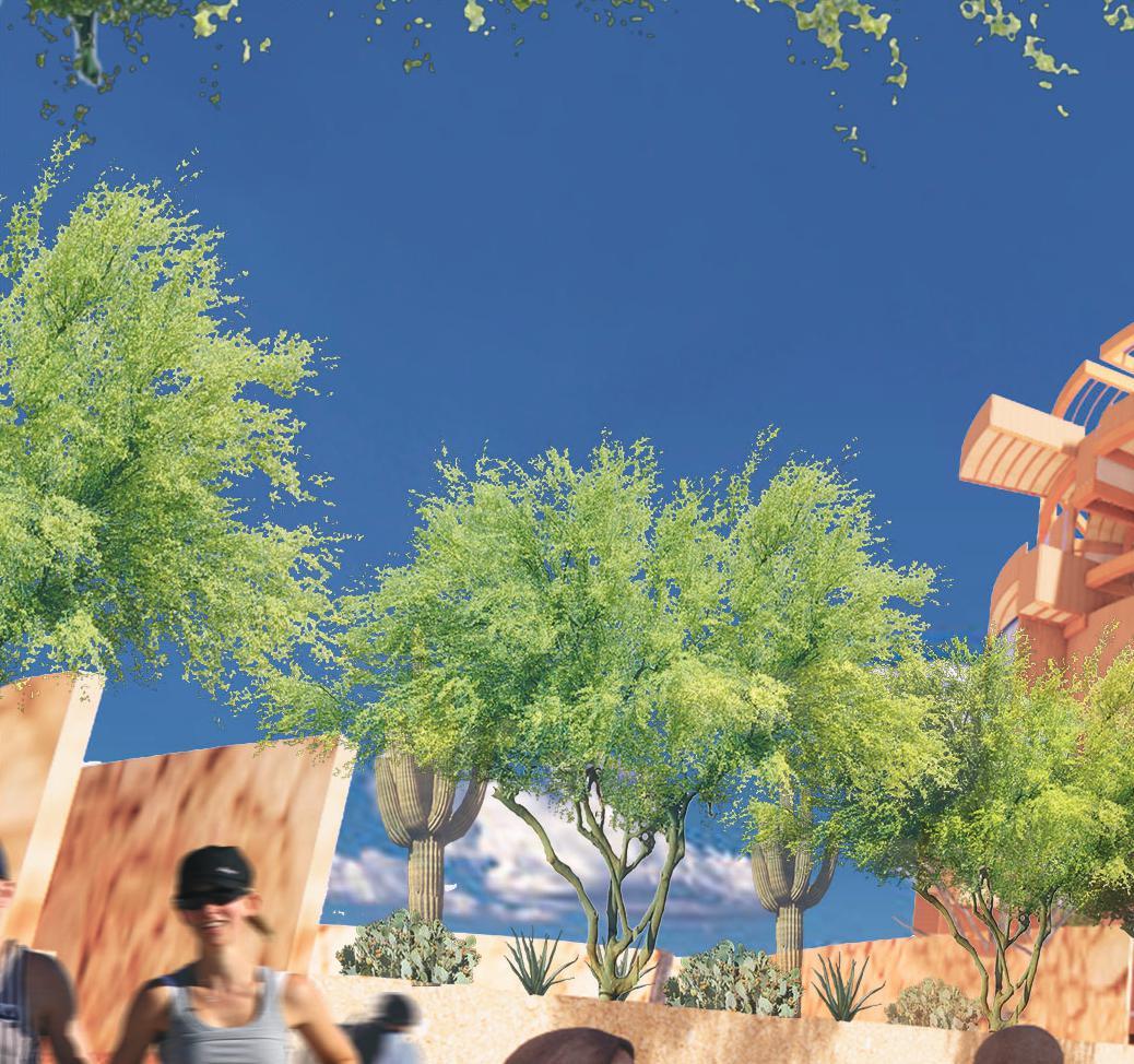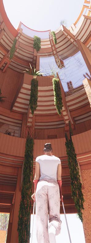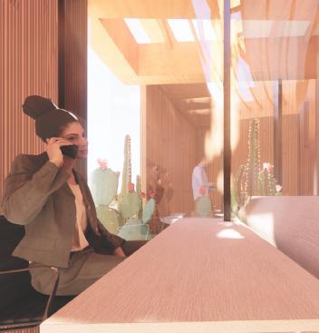 OWN is a mixed used building that accomates institutional, educational, commercial, and public uses. Located art of culture of Tucson, Arizona, Root Down serves as a beacon for public integration, educational exposition, e example of how buildings can be sustainably. Overall, it encompasses 21,334 sqft throughout 5 full or split ed floors. The bottom level, fully enveloped in the earth and most accessible to the public, is split into a public cafe and an inaccessible (to public users) service corridor. The lobby and admin spaces encompass the second round level, which also includes the archive. The third floor encompasses a fully public sphere encompassing afe and event space. The fourth floor is used for educational purposes comprised of a classroom, water quality meeting spaces. The final level is solely comprised of the hydroponics indoor farm. Overall, this building es the local cultural notions of interior and exterior and how these spaces can be blended and not treated in ack and white manner. This is while embracing natural phenomena and still allowing the building to achieve energy. This integration concept through exterior and interior ideas is executed through the explosion of levels ces, allowing for natural plant life to penetrate through the building in flora pots and better design for passive n, lighting, and water management.
