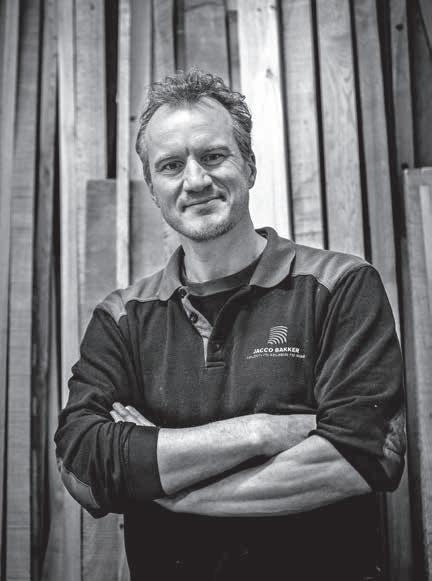 In zijn nieuwe showroom in Heerhugowaard vertelt hij er hon derduit over. Jacco: ‘Tijdens de opnamedagen is het net alsof je met één grote familie aan het werk bent. Je maakt onder deel uit van een goed geoliede machine, een flexibel team dat ondanks beperkte tijd en middelen vrolijk door kachelt. Niet alleen alle klussers, maar ook de cameramensen, pro ductiemedewerkers, geluid en regie: je maakt er sámen wat moois van.’ Jacco haalt graag herinneringen op aan een van zijn jeugdhelden, Jan des Bouvrie, met wie hij tijdens een aflevering een strandhuis in IJmuiden aanpakte. En die tij dens de lunch ‘net als wij ook gewoon op een klapstoeltje