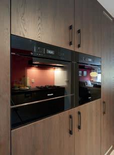 Ook Thijs en Martina kwamen bij Jacco Bakker voor een keukenontwerp. Toen de indeling en de materialen dui delijk waren en de apparatuur bepaald moest worden, verwees Jacco het stel naar het Miele Experience Cen ter. Hier werden zij wegwijs gemaakt in het brede aanbod van vaatwassers, (stoom)ovens en kookplaten. Martina: ‘Ik wilde heel graag een stoomoven. Normaal stoomde ik het eten al in de pan omdat daarmee de vitamines niet verloren gaan en de smaak beter behouden blijft. Dus eigenlijk leek zo’n oven me een beetje overdreven. Totdat ik bij een vriendin zag wat je er allemaal mee kunt! Hele maaltijden bereidt ze erin! Maar haar keuken is de mijne niet, en die van haar was ook alweer iets ouder. Ze zou
