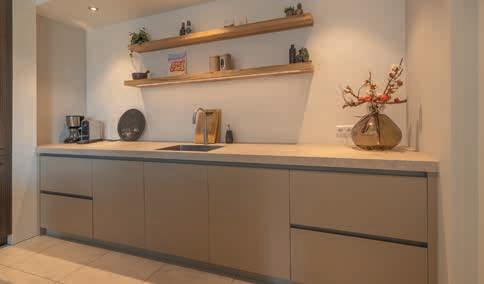 geeft een luxe, doorleefde glans, alsof je in een Italiaans palazzo staat. Beton ciré is stoerder en waterdicht, ideaal voor keukens en badkamers.’